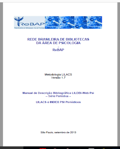 O Manual de Descrição Bibliográfica – Série Periódica - Lilacs e Index Psi Periódicos, editado pela Rede Brasileira De Bibliotecas Da Área De Psicologia, tem como objetivo orientar o Documentalista quanto ao preenchimento