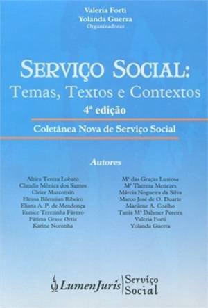 Esta obra é leitura obrigatória e inquietante por suas necessárias abordagens e perspectivas plurais, esta Coletânea é, sobretudo, um instrumento para subsidiar o debate sobre a questão social brasileira atual, as Políticas Sociais constituídas para seu enfrentamento e o papel do Serviço Social nesse processo (Maria Carmelita Yazbek) Uma lacuna na publicação do Serviço Social refere-se a reflexões sobre o cotidiano do exercício profissional dos assistentes sociais face aos dilemas impostos pela atual crise estrutural do capital. A coletânea "Serviço Social: temas, textos e contextos" pretende enfrentar este desafio (Maria Inês Souza Bravo). Contributo que busca ser representativo de parte de uma categoria que vivencia e enfrenta, no cotidiano profissional, as expressões da exploração do capital sobre o trabalho e constrói respostas no campo dos direitos, reconfigurando crítica e socialmente a "questão social" que se converte numa diversidade de demandas para a profissão.